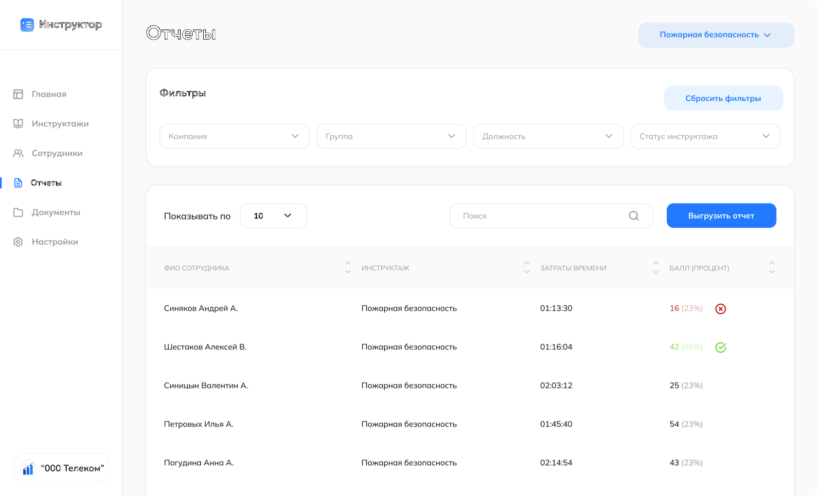 Оцените знания ваших сотрудников с помощью удобных тестов на нашей платформе. Получайте подробные отчеты о результатах прохождения тестов и анализируйте прогресс вашей команды.